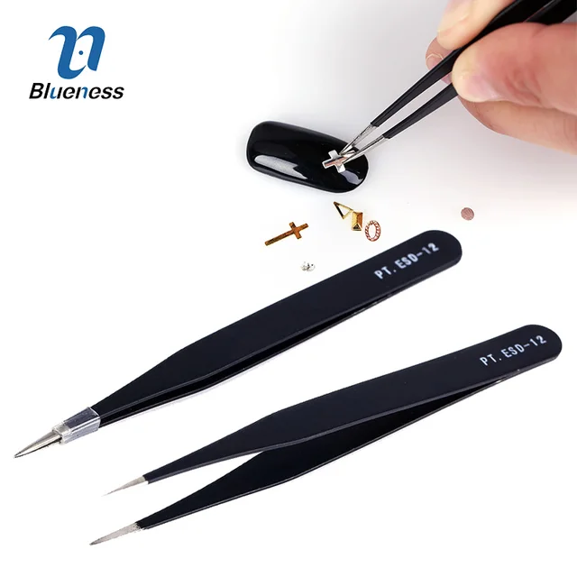 Blueness 1pcs Black Stainless Steel Antistatic Nail Art Rhinestones