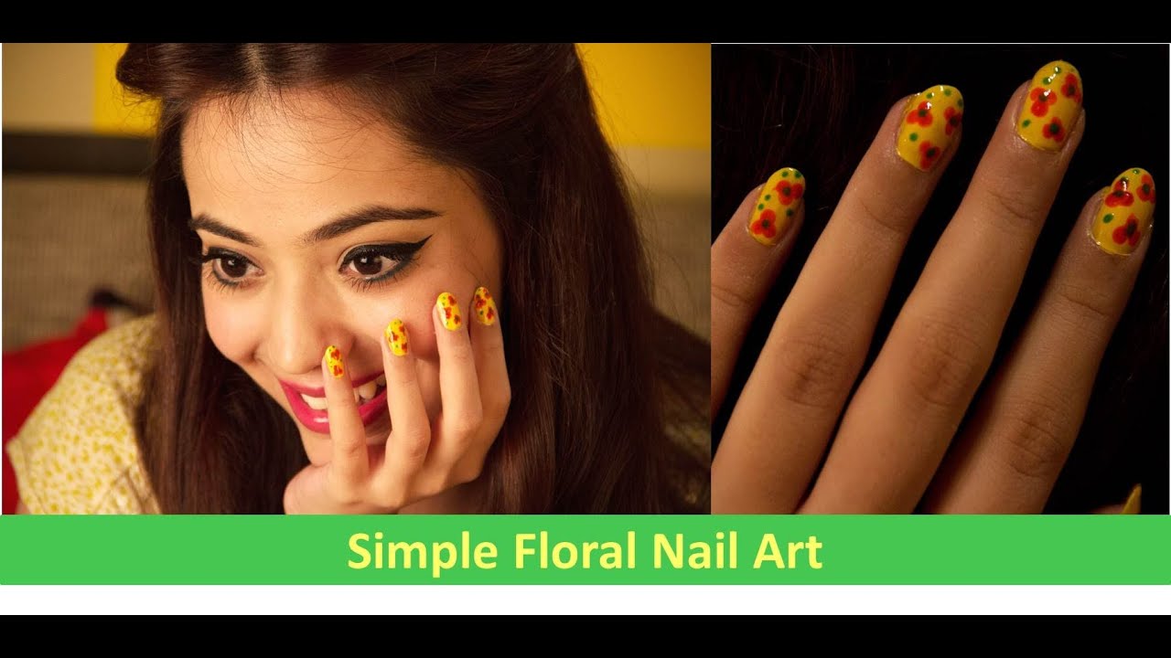 Simple Floral Nail Art Hindi