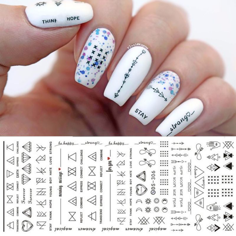 1 Sheet Letter Nail Art Water Decals Geometric Figure Nail Transfer