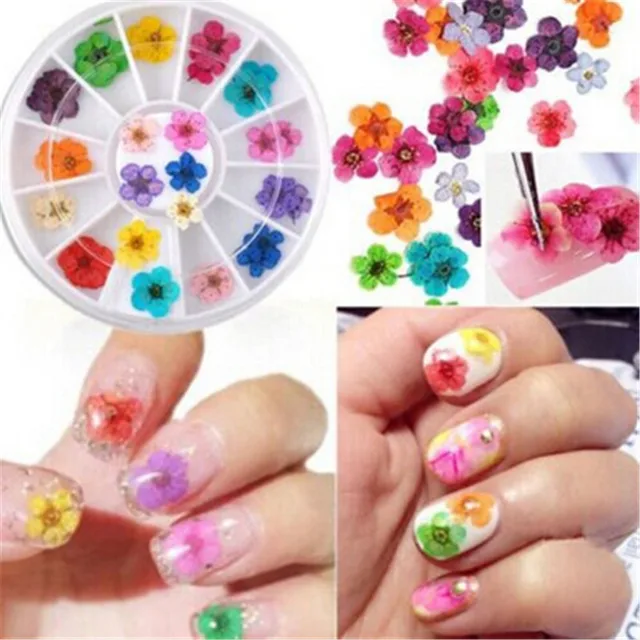 12 Colors Real Dry Dried Flower For 3d Uv Gel Acrylic False Tips