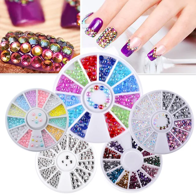 1 Box Colorful 3d Nail Glitter Rhinestones Jelly Ab Acrylic Pearls