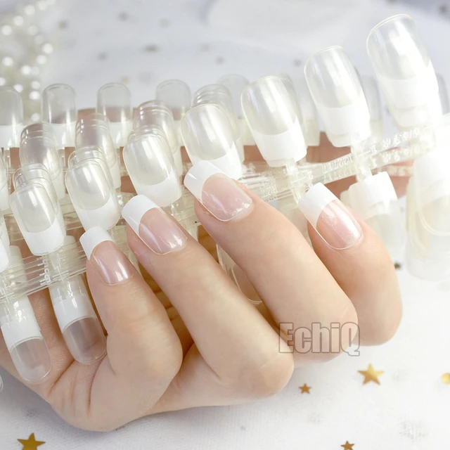 Wholesale Clear White French Nail Art Tips Medium Size Flat Acrylic