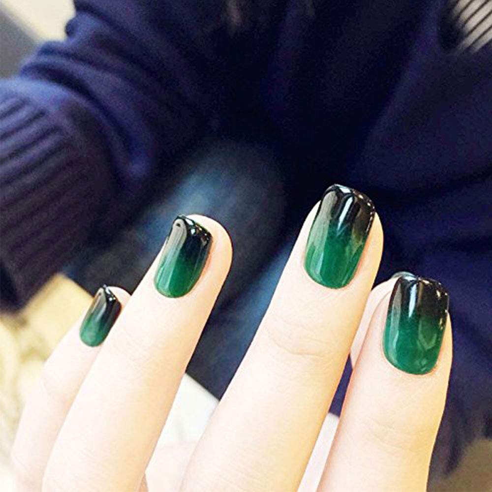 24pcs black green gradient short nail art round head false nails acrylic full cover false nails with design.