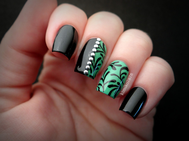 Nail Art With Green And Black