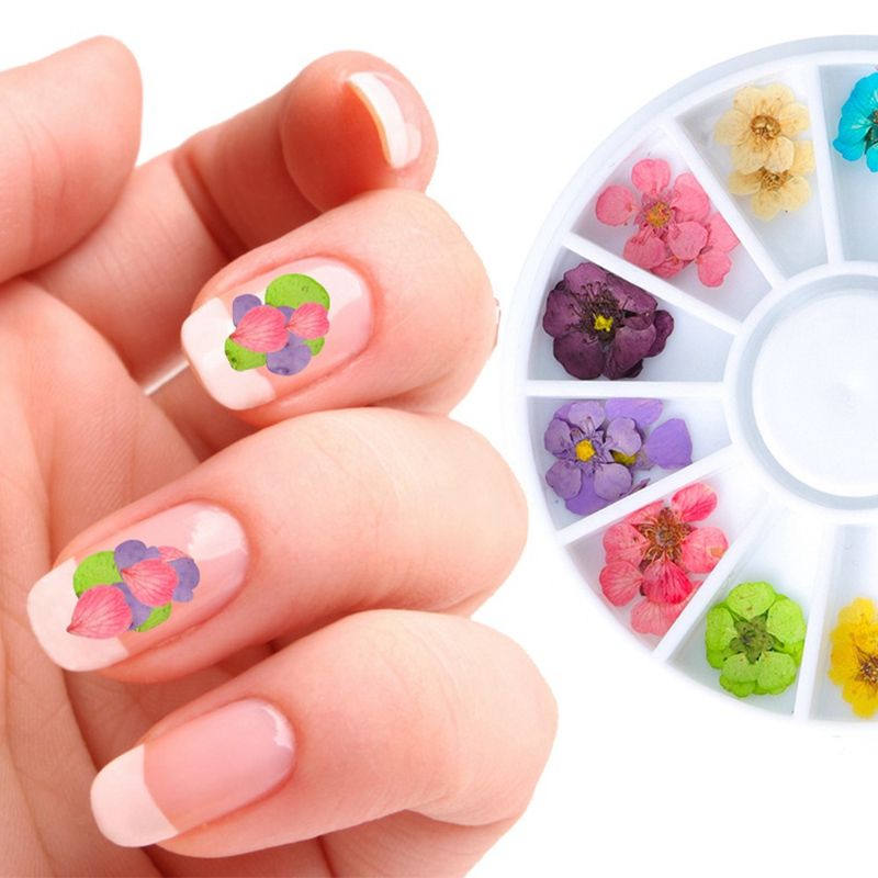 Us 1 48 10pcs Bag 14g Dried Flower Nail Art Real Dry Flowers Nail Art Sticker 3d Diy Decorations Tips For Nail Art Different Colors In Rhinestones