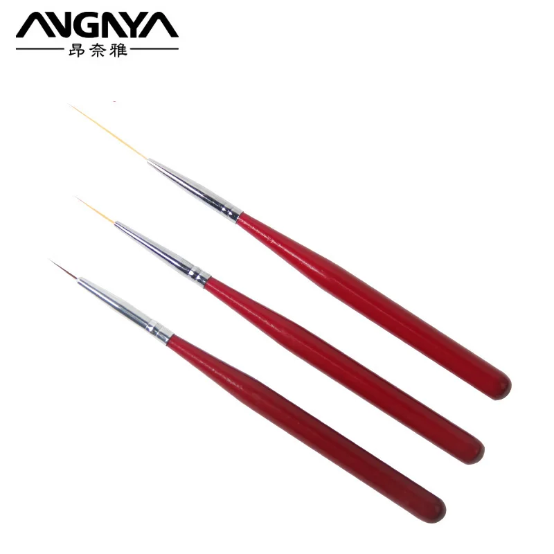 Angnya 11 15 30mm Red Wood Handle Skinny Nylon Salon Using Nail Art