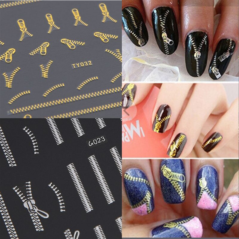 Zip Nail Art Sticker 3d Zipper Gold Silver Shine