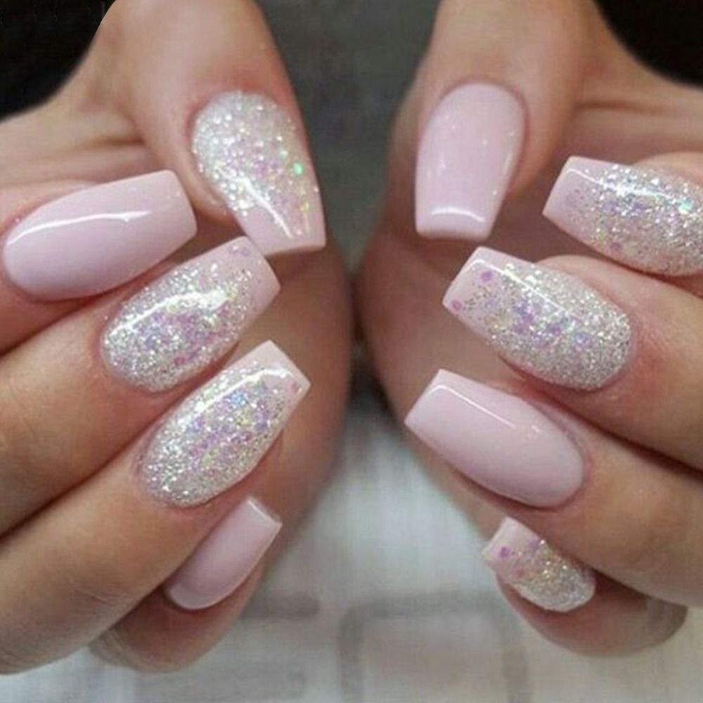 Amazon Com Yunai 24pcs Set Art False Nails French Manicure Glitter