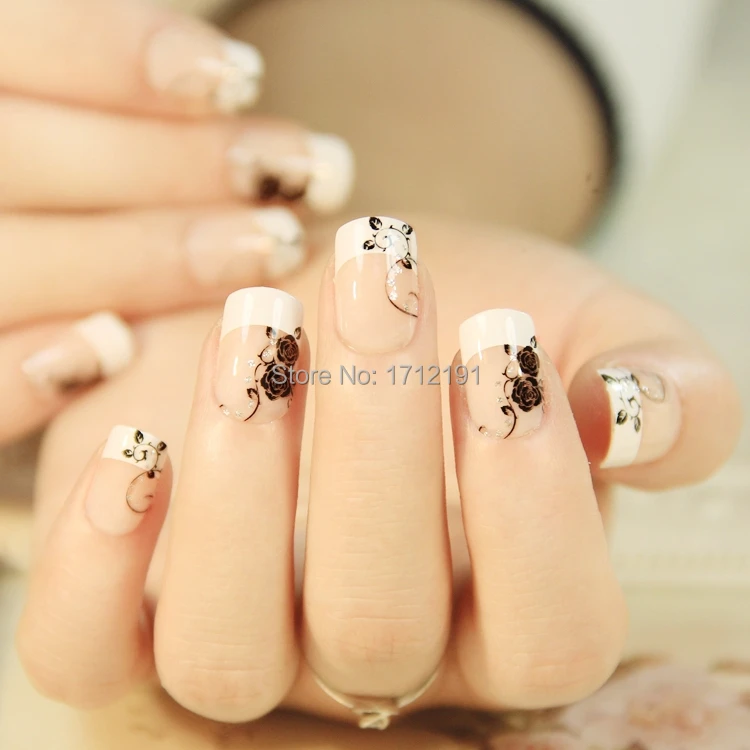 Wholesale Nail Art Frech Glitter Nail Print Flower Nails Tip Bride