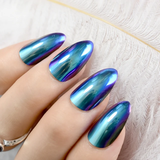 Us 1 3 Chrome Mirror False Nail Metallic Stilettos Sharp False Nail Metal Blue Purple Fake Nails Acrylic Artificial Stiletto Nail Art In False Nails