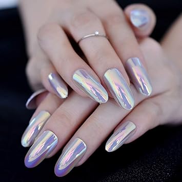 Amazon Com Metallic Mirror Bright Chrome False Stilettos Nail