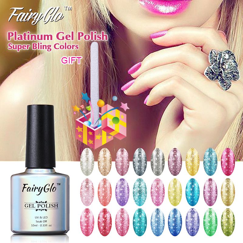 Fairyglo 10ml Bling Gel Polish Nail Art Set Buffer File Platinum