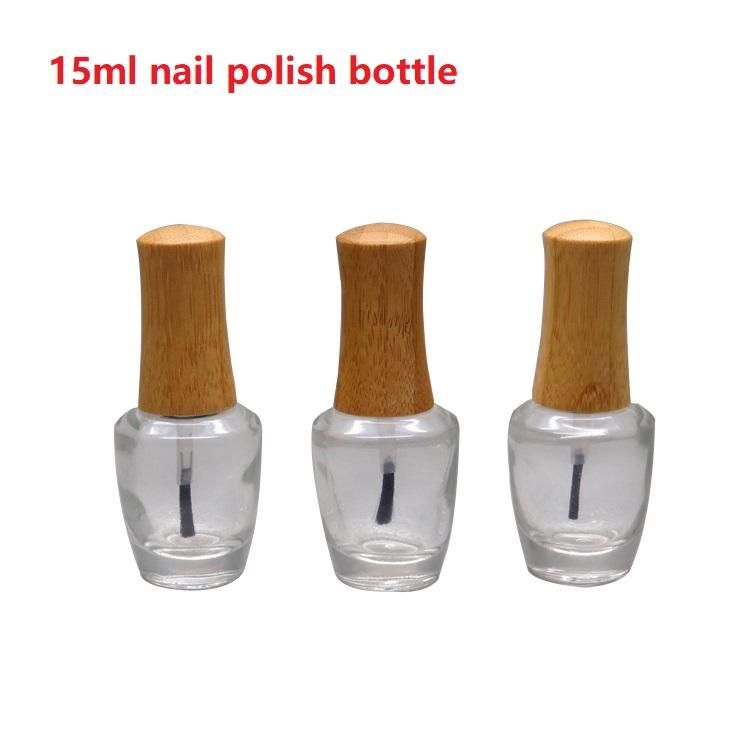 2019 15ml Empty Clear Glass Nail Polish Bottle With Bamboo Cap Diy