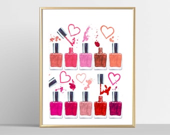 Watercolor Nail Polish Wall Art Print Pink Nail Polish Print Etsy