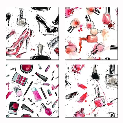 Amazon Com Sea Charm 4 Panel Wall Art Fashion Makeup Nail Polish
