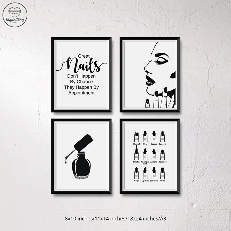 Nail Salon Decor Set Of 4 Wall Art Prints Digital Download Etsy