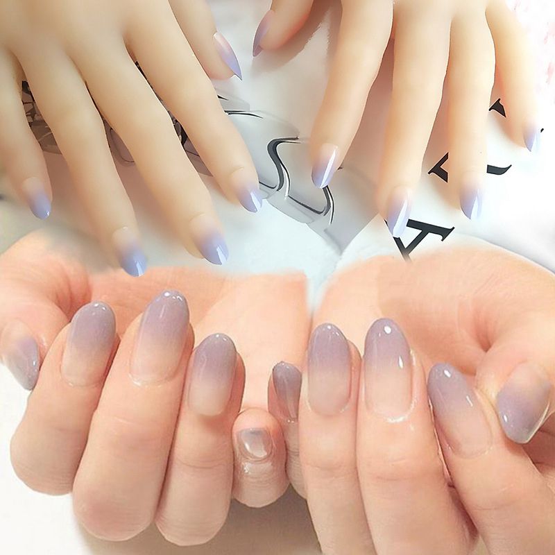 Meet Across Naked Purple Gradient Design Fake Nails Charming Round