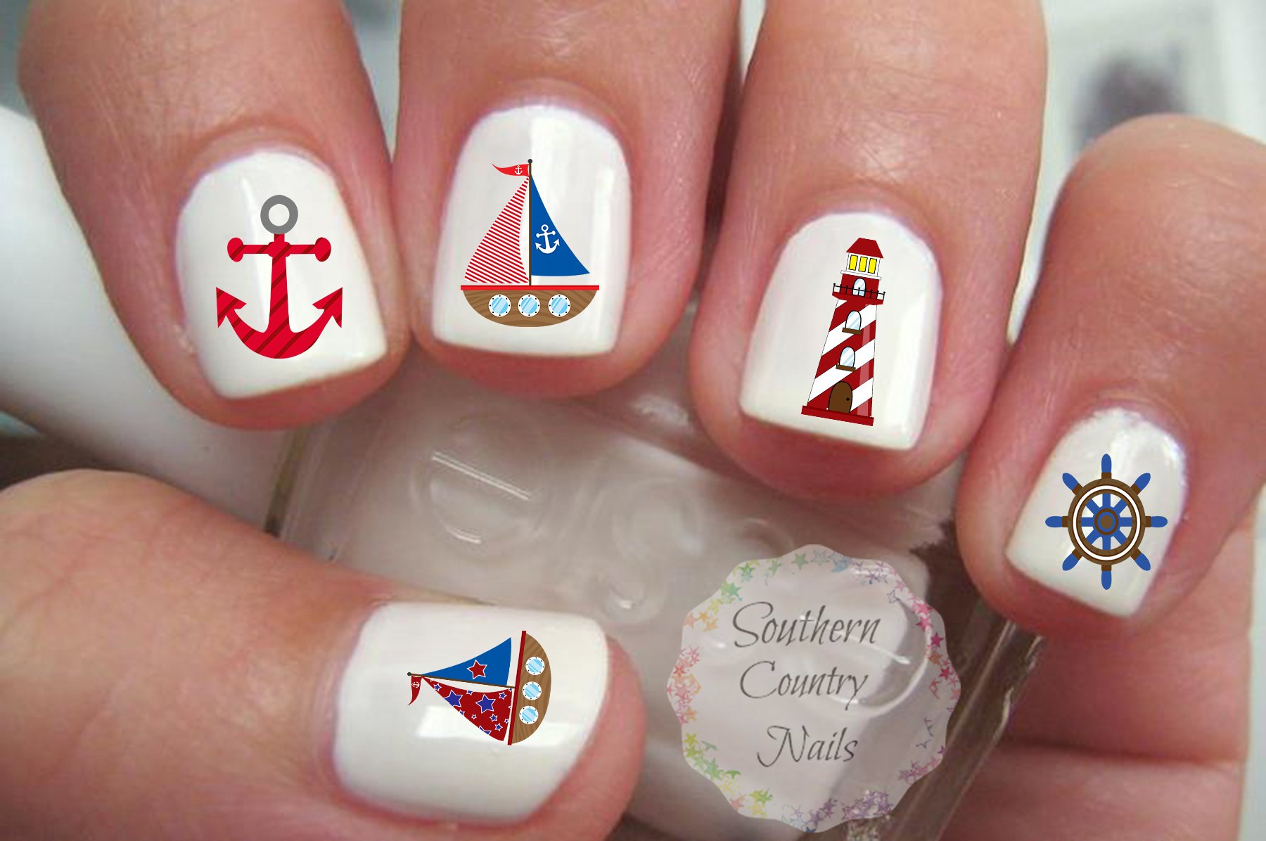 Nail Art Decals Nautical Water Slide Stickers Nail Transfer Etsy