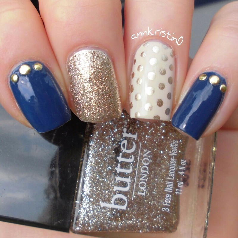 Mix And Match Gold And Navy Nail Art By Ann Kristin Nailpolis