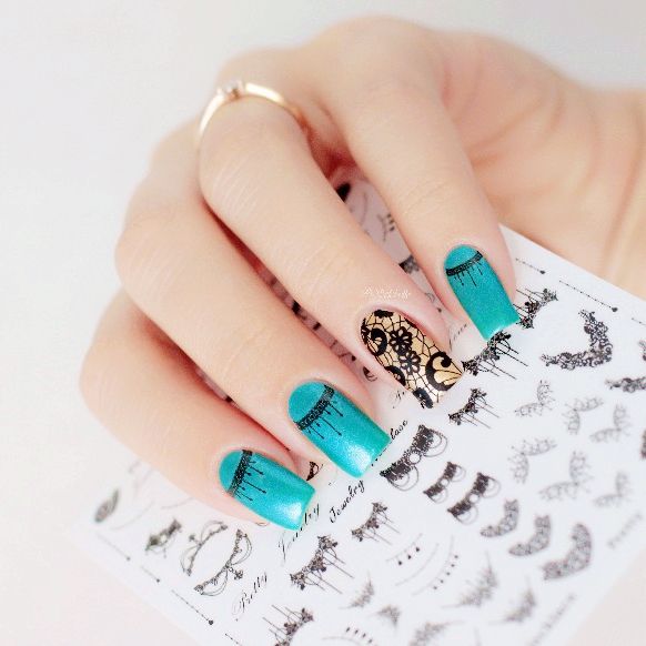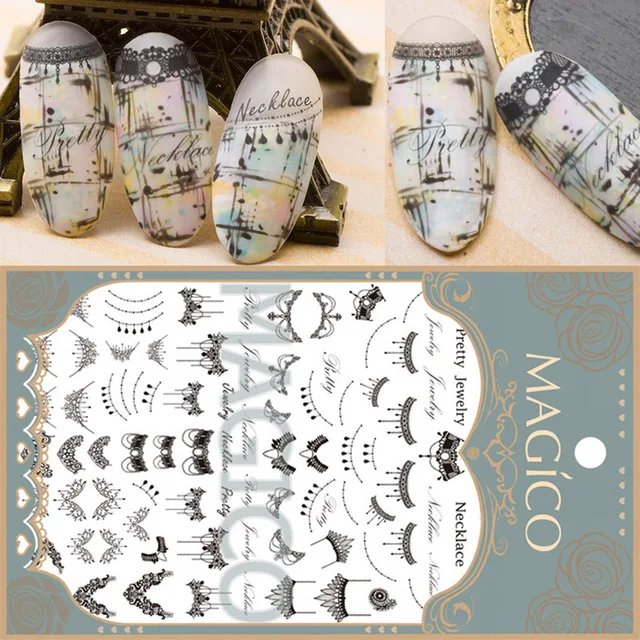 1sheet Black Necklace Nail Art Sticker Classical Tiara Headware Lace