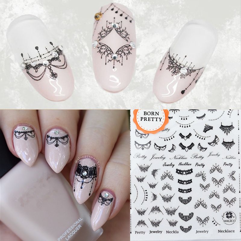 Amazon Com Elegant Black Lace Necklace Jewelry Nail Art Stickers