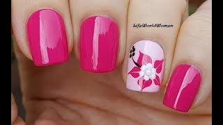 Pink Tropical Flower Nail Art With Needle Dotting Tool The