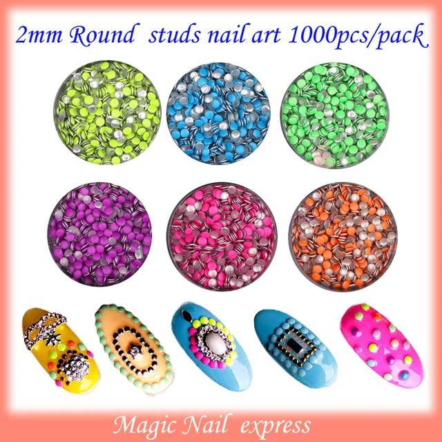 2 59 200pc Bag 2mm Neon Round Stud Rhinestone Acrylic Uv Gel Nail