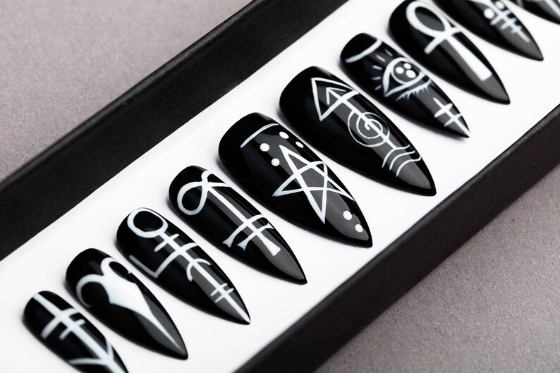 Sigil Press On Nails Occult Signs Black Nails Hand Etsy