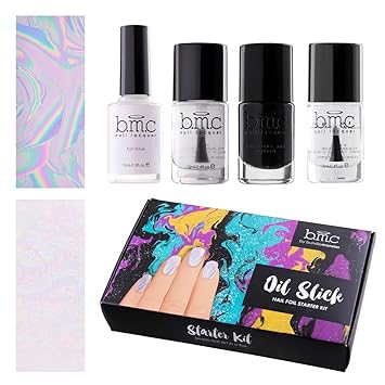 Amazon Com Bmc Oil Slick Nail Art Foil Starter Kit Base Coat