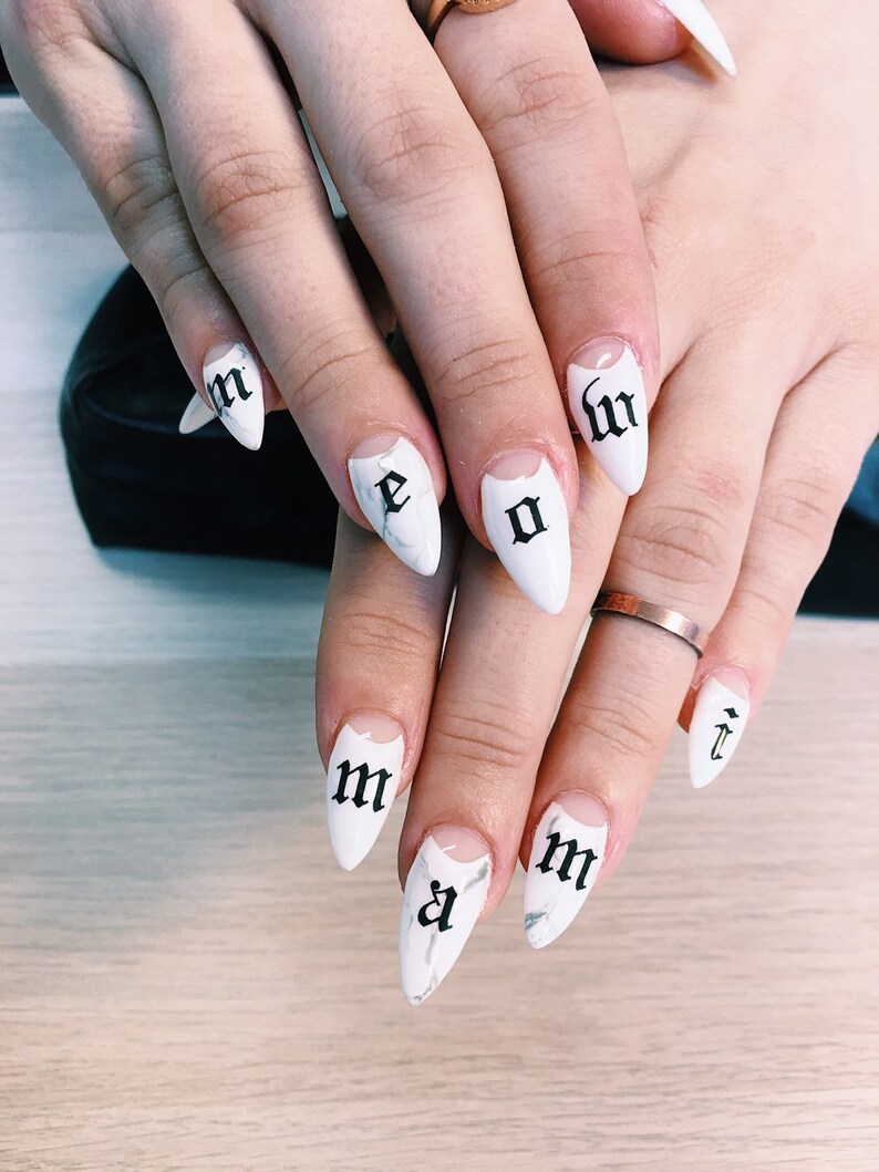Old English Nail Decals For Long To Medium Nails Nail Wraps Etsy