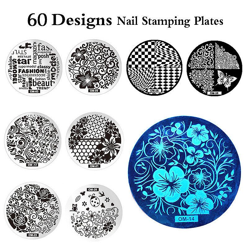 New 60designs Om Nail Art Plate Stamp Stamping Set Round