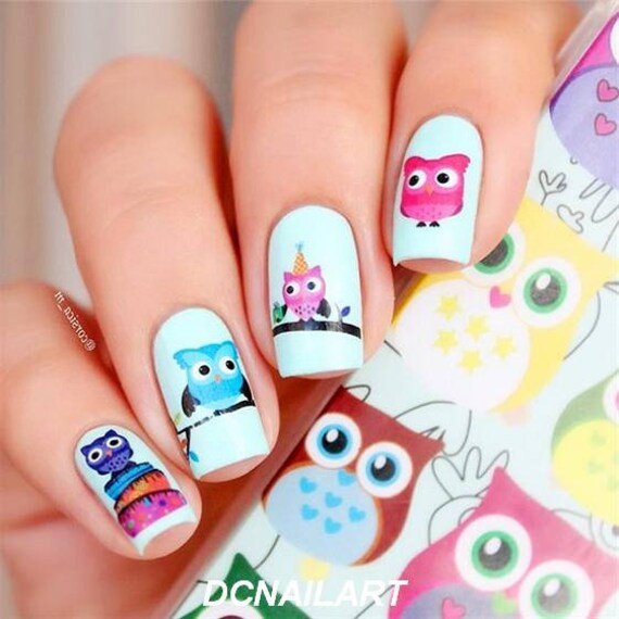Owls Nail Art Colorful Owls Nail Water Decals Wraps