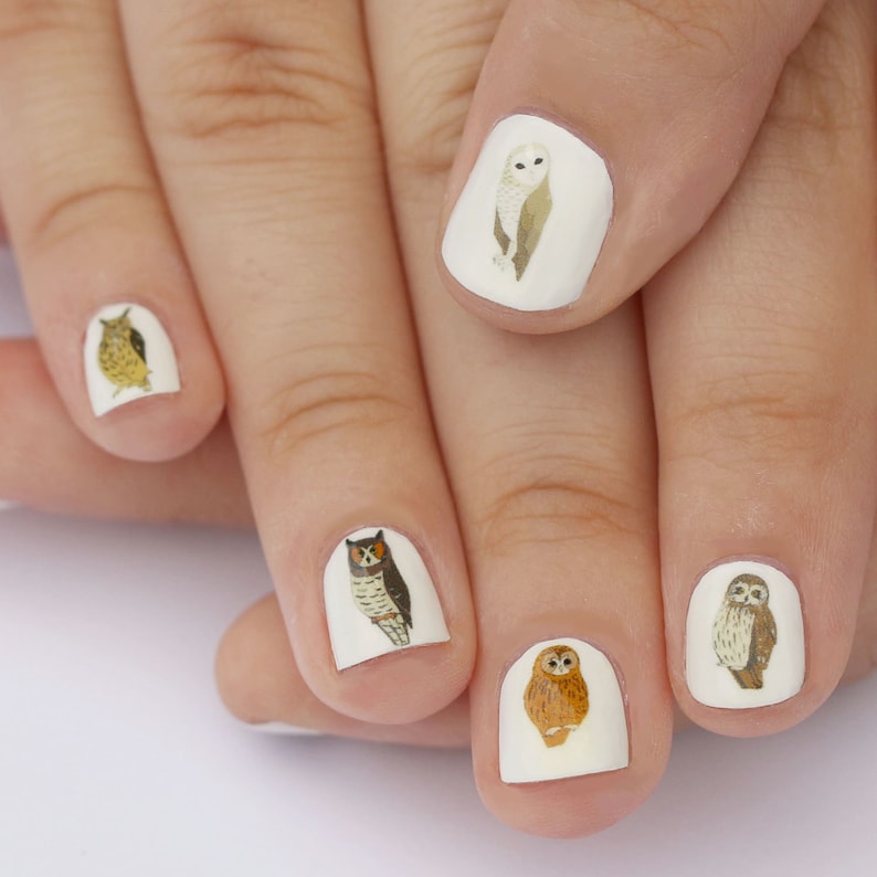 Owl Nail Transfers Illustrated Bird Nail Art Stickers Wildlife Nature Nail Decals