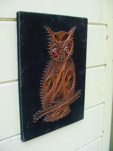 Details About Vintage Mid Century String Art Copper Wire Nail Wall Art Hoot The Owl