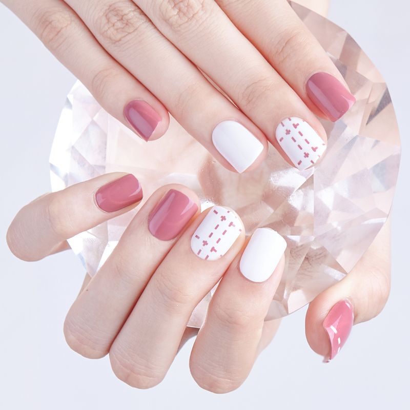 Cheap False Nails Pale Mauve Line Fake Nail Art Decoration Striated
