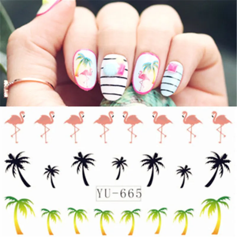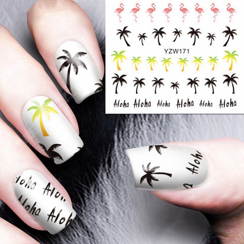 1 Sheet Hawaii Palm Tree Nail Art Water Decals Flamingo Design