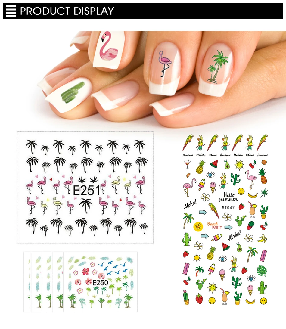 Clearance Palm Tree Flamingo Mixed Pattern Stickers For Nails 3d