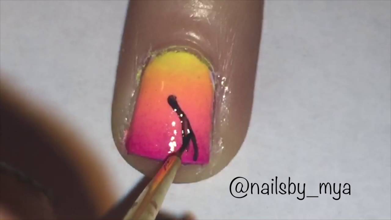 Nail Art Tutorial Silhouette Palm Tree Youtube Nail Art Nails