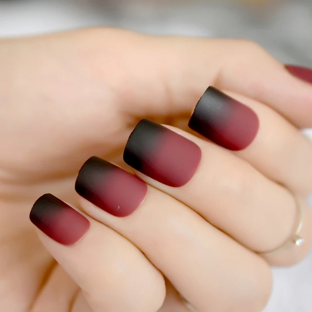 Gradient French Matte Fake Nails Claret Red Wine Black Frosted False