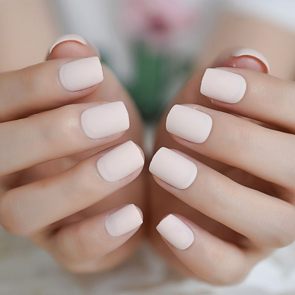 Beige Nude Color Matte Fake Nails Frosted Coat Square Top Pre Design