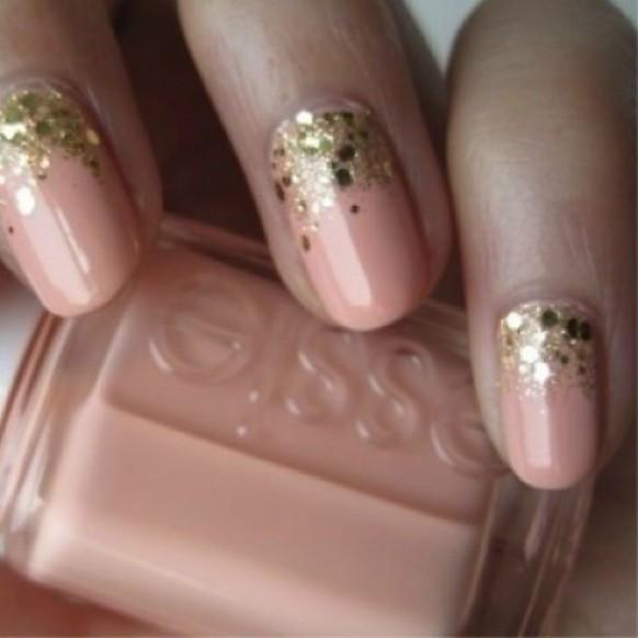 For getting a stamped black and gold nail art you may have to undergo a bit of training and may have to refer tutorials shown in various sites but once you get the knack of painting your nails with stamps you can be rest assured to look stylish and a class part from others. Gold art for short nails. Peach nails with glitter can be extremely versatile and if you do not believe us we are going to prove it to you here. Peach nails with gold glitter look fantastic together and there is no wonder why since peach and gold nail colors seem to be created for each other.