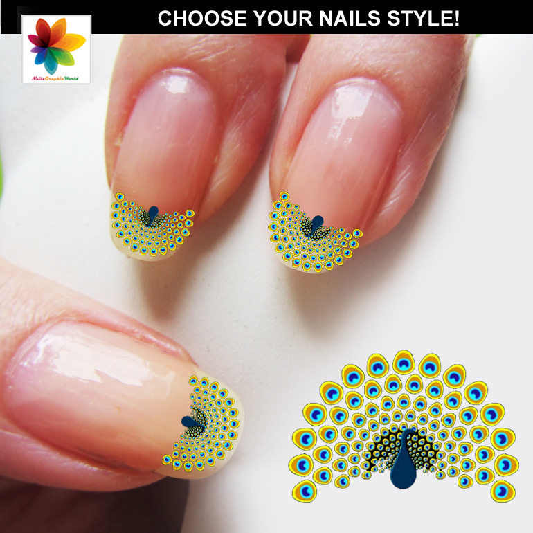 Peacock Feather Peacock Feather Nail Art Nail Decal Set Of 60 Waterslide Nail Decal Pea005 From Nailsgraphicworld