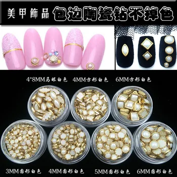 500pcs Nail Art Decorations Mixed Color Pearl Gold Alloy Edge 4mm