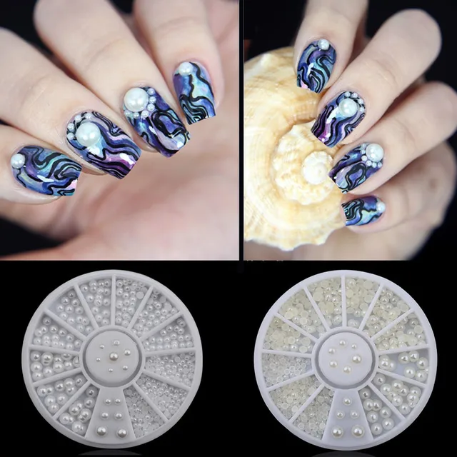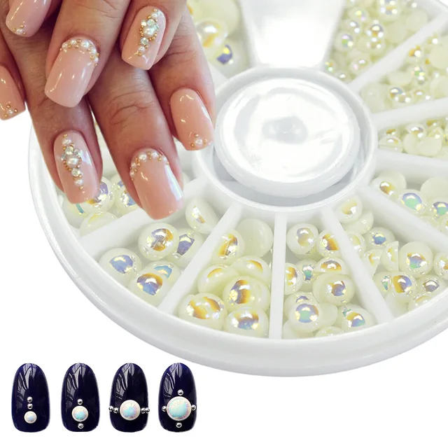 Mixed Size Nail Pearl Wheel Mermaid Ab 3d Charm Half Beads
