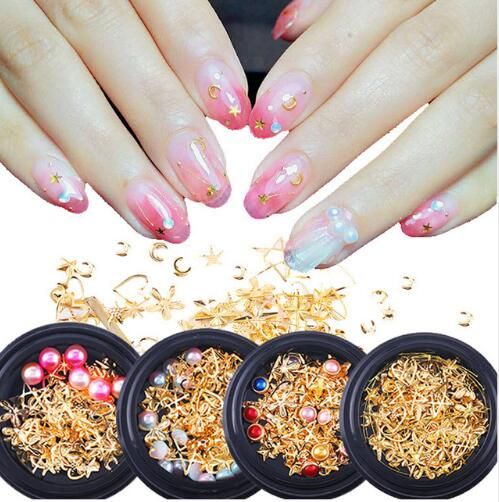 Mix Gold Nail Art Rivet Star Moon Pearl Rhinestones Gems 3d