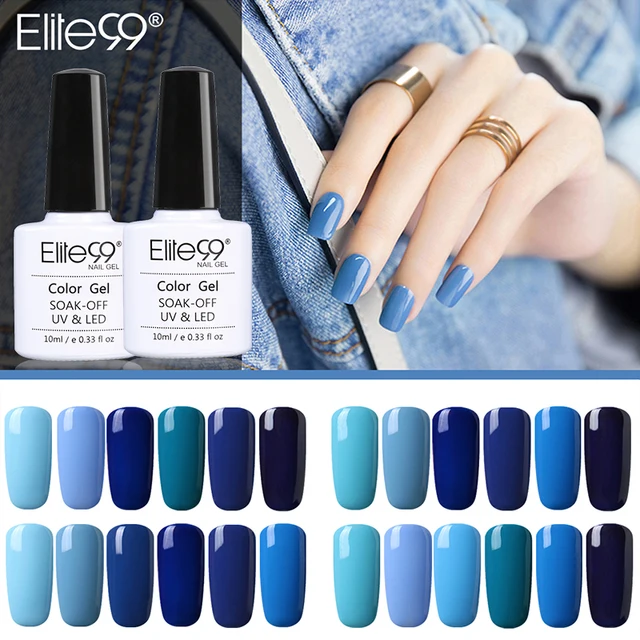 Elite99 White Bottle 10ml Blue Gel Nail Polish 6pieces Lot Nail Art