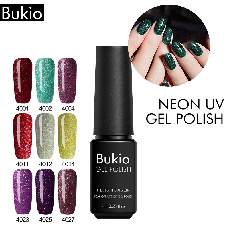Bukio 7ml Colorful Glitter Nail Art Neon Gel Polish Long Lasting