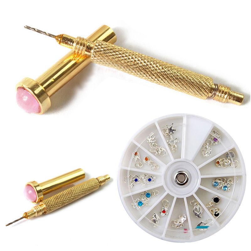 Nail Art Charm Piercing Hand Drill Hole Pierce Tool 24 Pendants