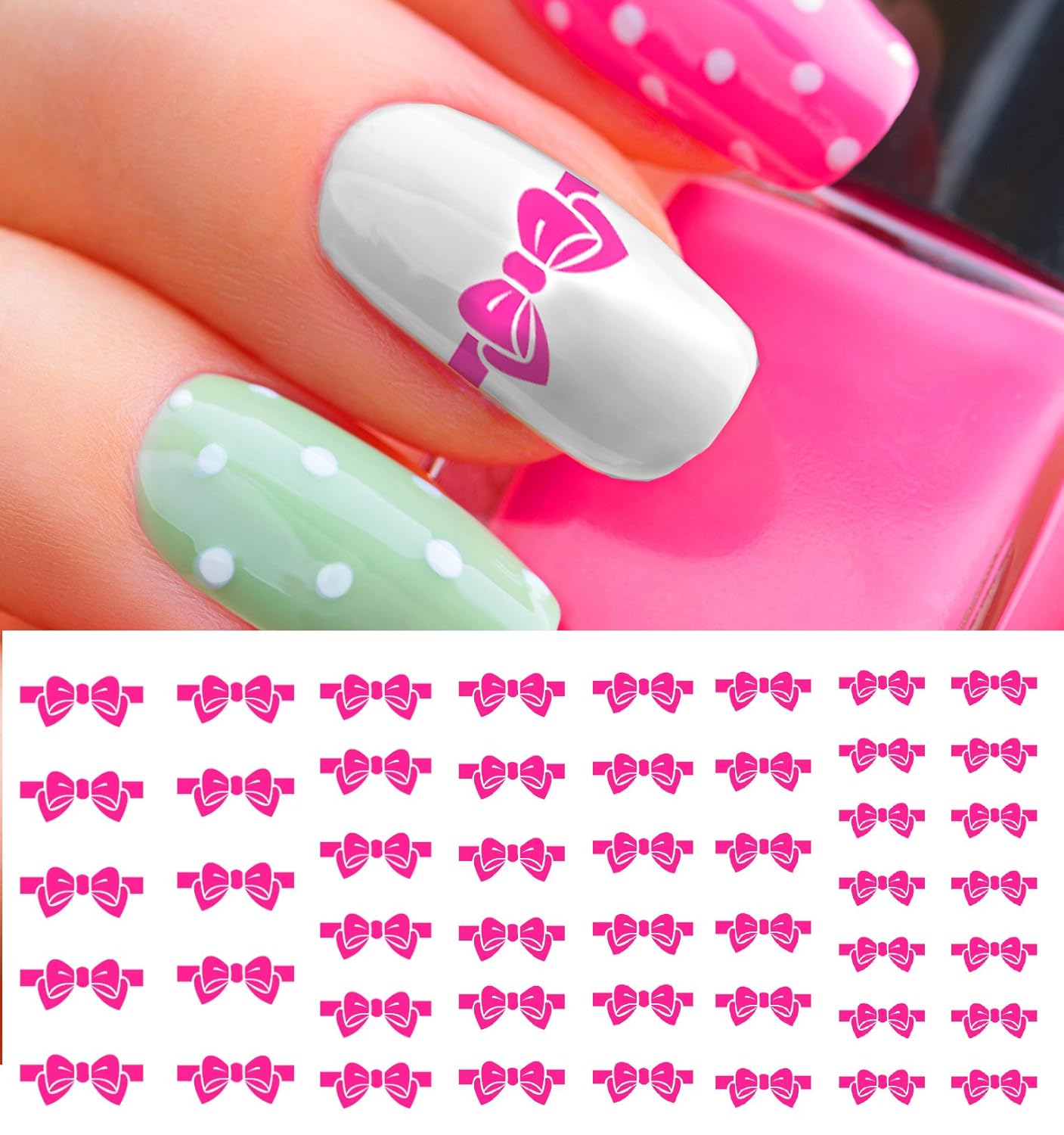 Bow nails are often painted in feminine colors like pink or classic colors like black and white. Bow nails are often painted in feminine colors like pink or classic colors like black and white. Nail designs trend of has caught the craze among most women and young girls. You are getting on the nail decals shown in the image.