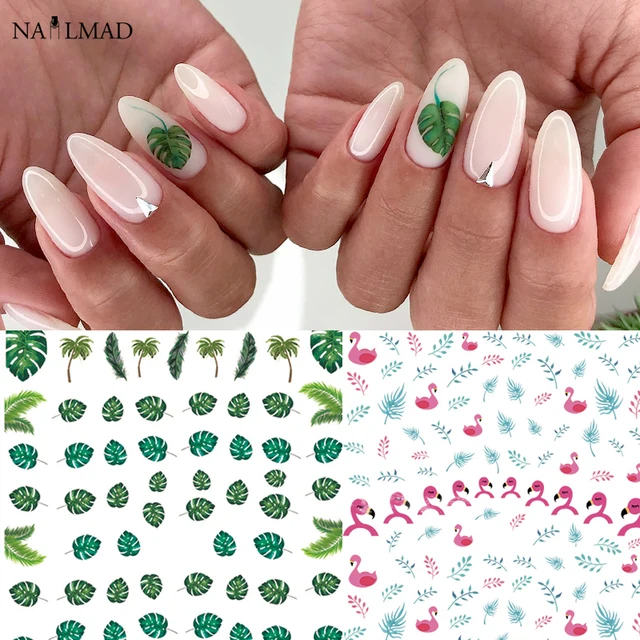 12 Sheets Tropical Leaf Water Decals Cheese Plant Nail Stickers